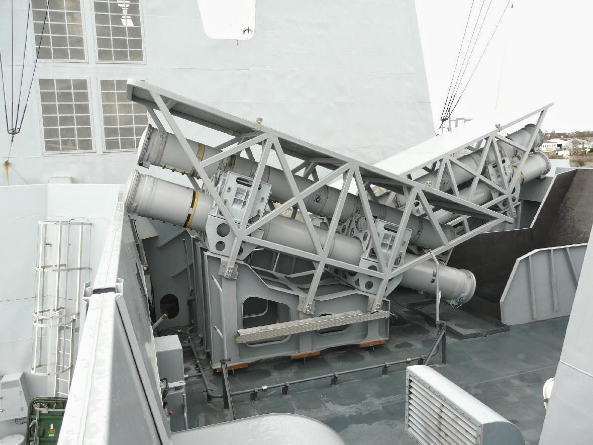 | The single torpedo launcher of destroyer Caio Duilio. The 2nd launcher has not been fitted. |
