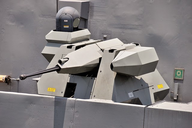 The secondary armament includes two Rafael Typhoon Mk25 naval stabilized gun mounts of 25mm on the port and starboard corners of the helicopter hangar. The mounts are produced jointly by Rafael Armament Development Authority Ltd and General Dynamics Land Systems and they incorporate a stabilized sensor ball (Rafael Toplite) with electro-optical TV, laser rangefinder, and infrared sensor, a fully-stabilized mount, and a remote firing option using a fire control console mounted inside the ship. The mount has stealthy panel coverings and a laser target designator TLS. The Typhoon allows the frigate to lock-on and fire-on-the-move without a standing gunner behind the gun, and to fire in nighttime and adverse weather conditions using the stabilized sensor ball. The mount’s main weapon is the M242 Bushmaster 25-mm chain gun, a proven NATO standard auto cannon with 2.5 km range and selectable rates of fire. The rate of fire is 180 rounds per minute, with the system providing 168 rounds on-mount. There is also a coaxial mounted 7.62mm machine gun on the Typhoon mount. Other secondary armament may include 2-4 heavy machine guns like the CIS-0.50 which is manufactured by ST Kinetics of Singapore and it has a rate of fire of about 600rds per minute.