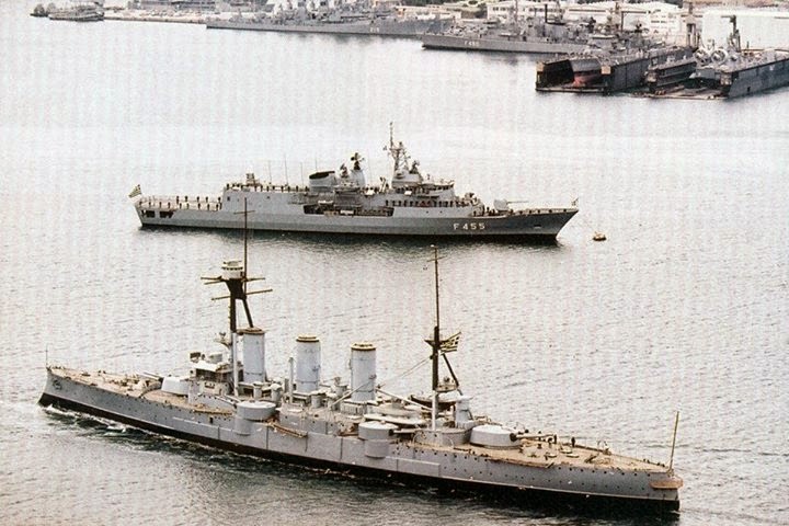 | The three battleships of Hellenic Navy, Georgios Averof, Kilkis and Lemnos. |