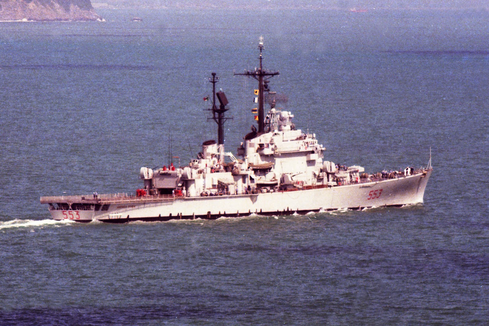 In the late '70s the two vessels received an extensive upgrade on their electronic package but also on their armament were they replaced the obsolete Terrier missiles with the new Standard Missiles.The Caio Duilio was modified to become a training ship and thus its the ship's original hangar was turned into classrooms and additional accommodation, with a new, smaller, hangar being built on the forward part on the helicopter deck, reducing the ship's aviation capacity to two helicopters. The aft two guns were also removed together with their associated fire control radar.