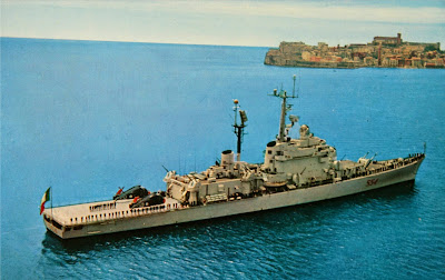 In the middle '50s the United States Navy began a massive conversion of WWII gun cruisers (Baltimore, Cleveland and Oregon City classes) to guided missile cruisers, warships with the main task to provide air-defence (anti-aircraft warfare - AAW) to the fleet. Inspired by this conversions, Italy was the first European country to convert (1957-1961) a WWII Duca degli Abruzzi class light cruiser, Giuseppe Garibaldi, to a guided missile cruiser. In 1957 the Italian Navy decided to order its first new major warships after WWII, the Andrea Doria class guided missile helicopter cruisers. The hull was based on the Impavido-class, the first Italian guided missile destroyers. Two ships were built while the third ship, C555 Enrico Dandolo, was cancelled in favor of a more advanced and enlarged design, the Vittorio Veneto (C550).