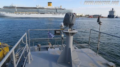 This is my first photo gallery about a Coast Guard patrol vessel. In this post, you will enjoy some good photos I took some days ago when I visited the HCG080 (ΛΣ 080) Agios Efstratios, the latest of the three 58-meter Sa'ar class offshore patrol vessels (Περιπολικό Ανοικτής Θαλάσσης, ΠΑΘ) that serve with the Hellenic Coast Guard (Λιμενικό Σώμα - Ελληνική Ακτοφυλακή). These patrol vessels are the the most heavily armed boats currently in the Hellenic Coast Guard inventory. The