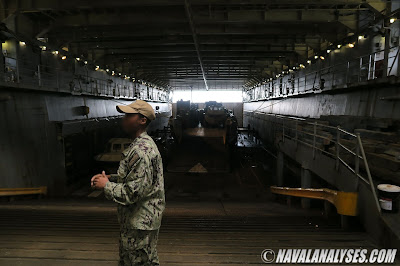 The well deck is smaller than the one of Whidbey Island class LSDs